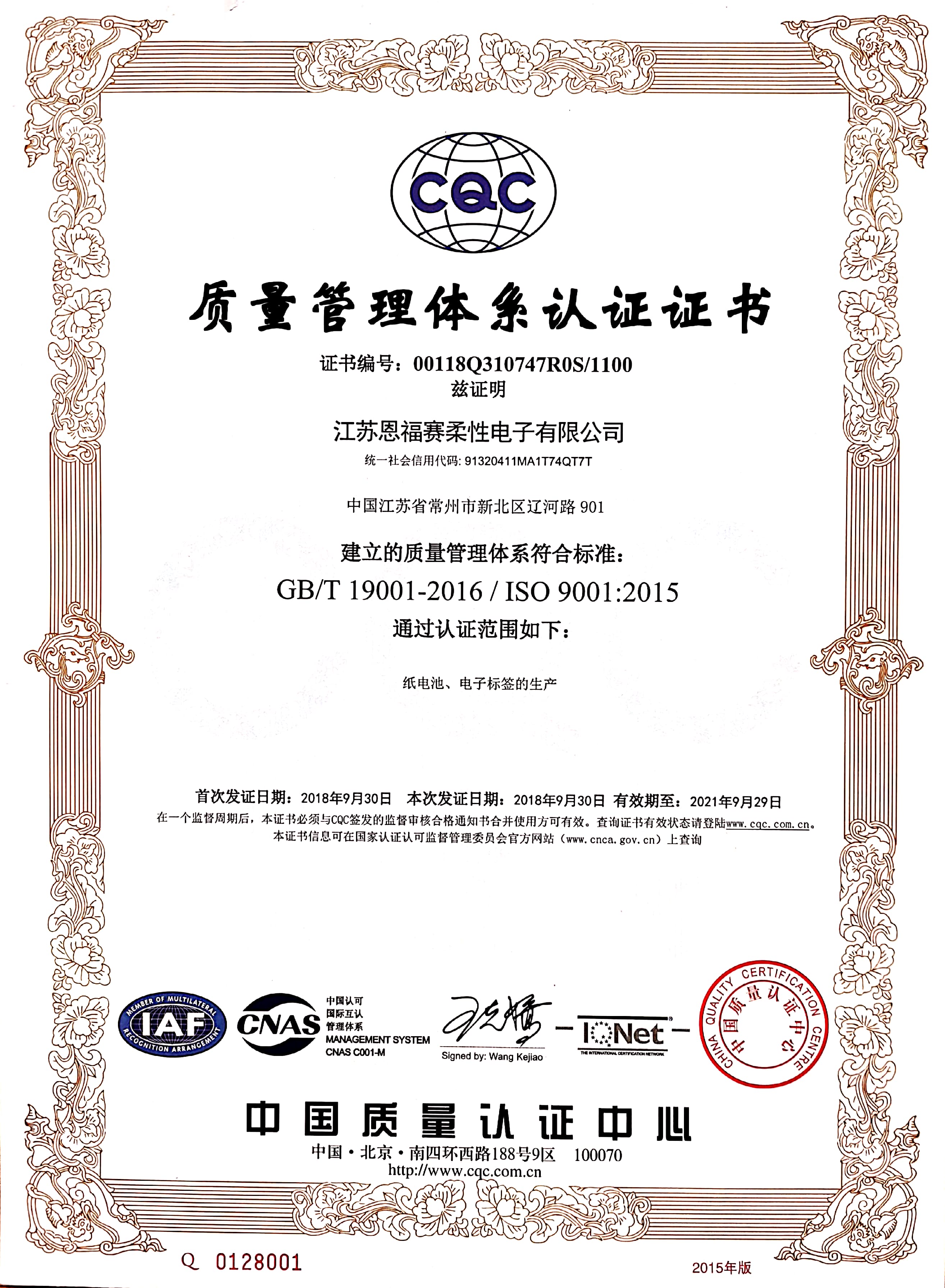 江苏恩福赛柔性电子有限公司是专业从事世界上最新工业-印刷电子产品的研发、应用和销售的企业,企业的核心产品是荣获DAVOS世界经济论坛技术先锋奖的薄膜印刷纸电池。公司以“柔性电池之父” ——张霞昌博士为核心,将他在芬兰十多年来开发研究的低能耗应用领域电源(世界最先进的绿色新能源 )技术引入中国 ,公司拥有五十几项专利。
