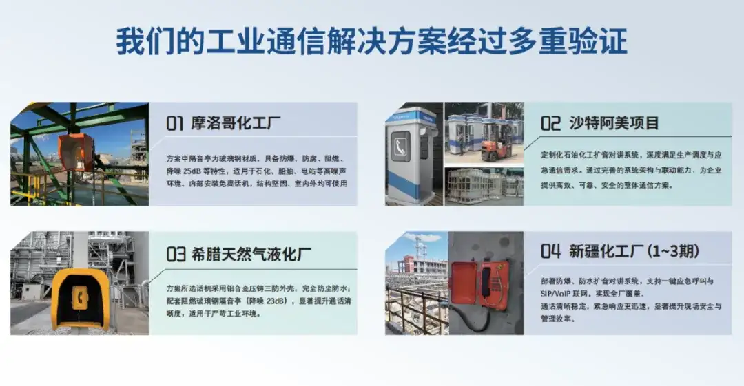 系统可覆盖生产装置区、储罐区、装卸区以及高位操作区,实现厂区无盲区通信,保障调度指令快速准确下达。
