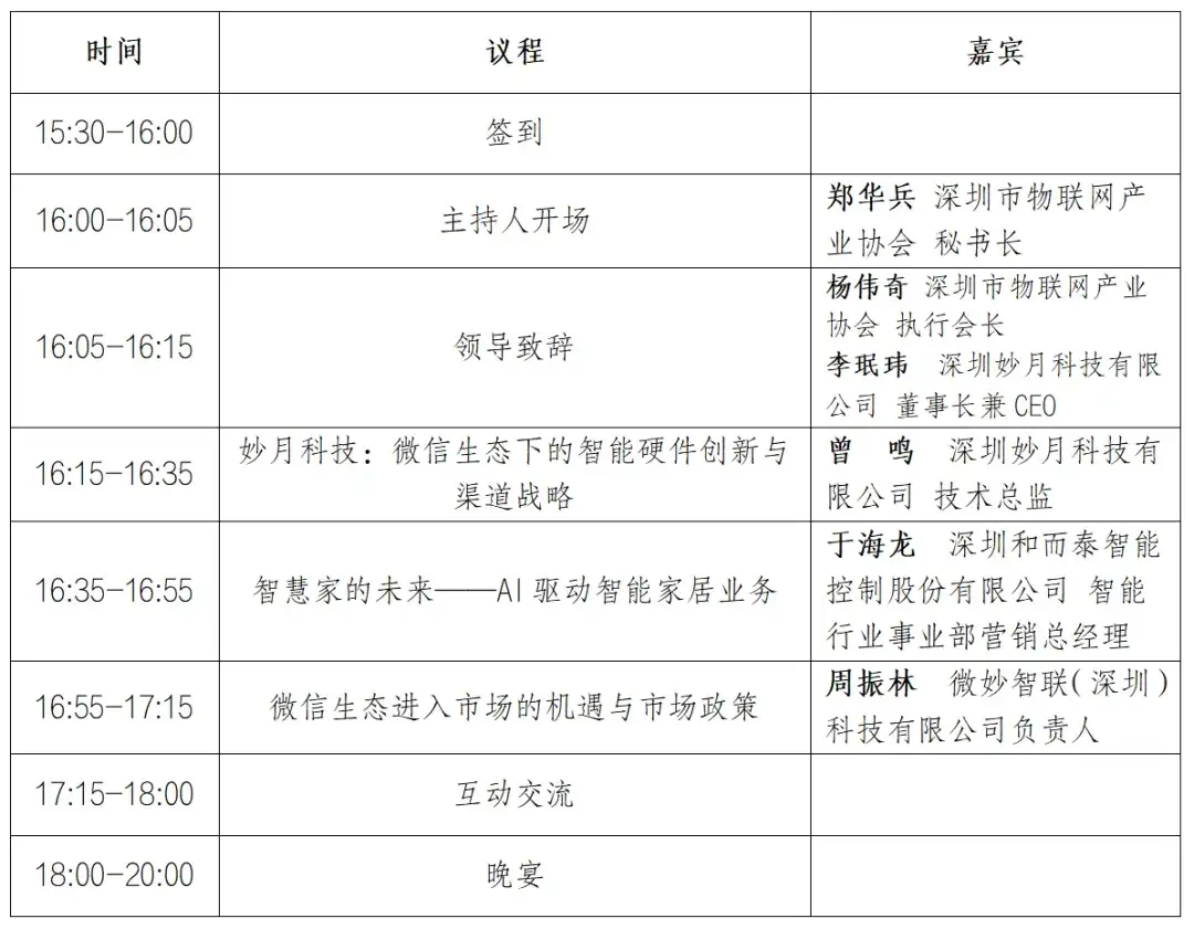 参会要求:智能硬件厂商,每家企业仅限1名高管参会,谢绝空降