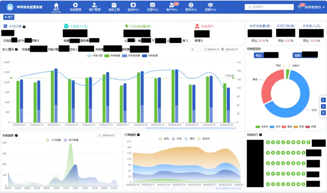 充电桩运营SAAS系统-运营看板