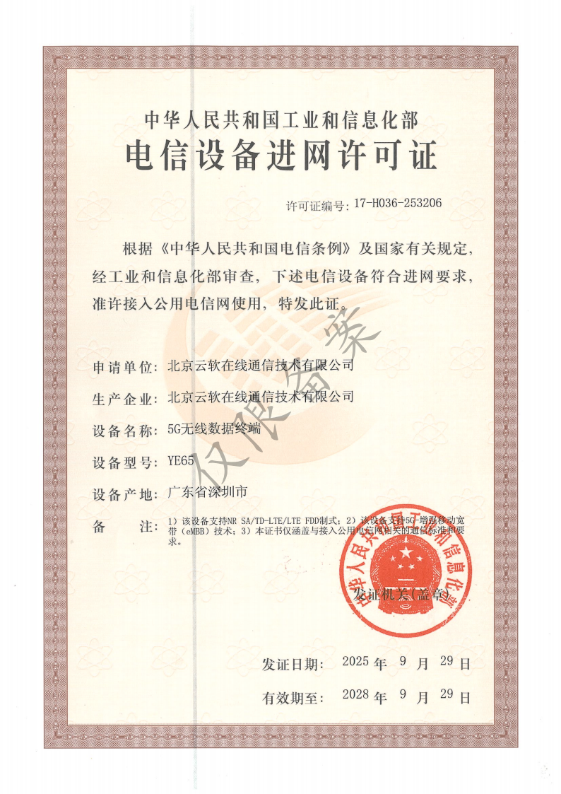 认证:5G无线数据终端