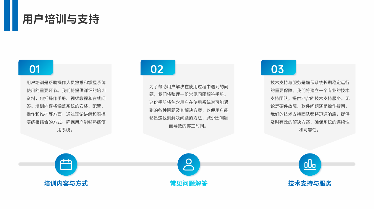 设备安装与维护 :设备安装非常简单,只需要安装一个APP,或者直接调用小程序免安装,我们会 对应用系统进行定期维护,以保证其长期稳定运行。
