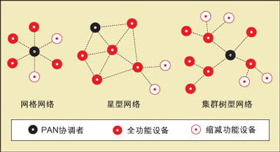 图2:ZigBee支持多种网络拓扑, |
